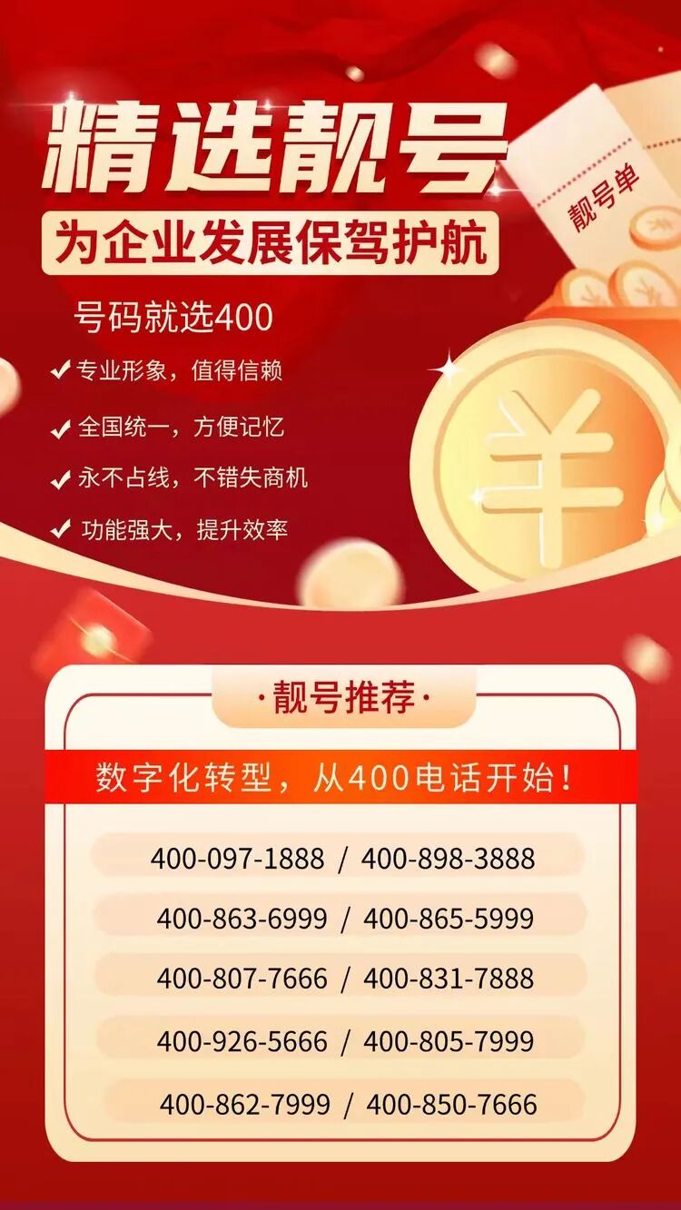企业可根据自身需求选择不同类型的400靓号。常见的靓号类型包括连号(如400-XXX-8888)、顺子号(如400-XXX-1234)以及带有吉祥寓意的数字组合。这些号码不仅易于客户记忆,还能在宣传物料、广告投放中增强品牌辨识度,间接提升营销效果。